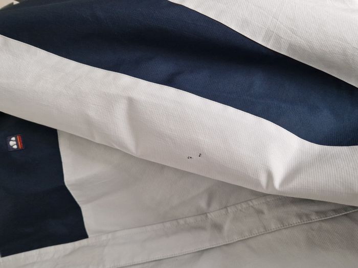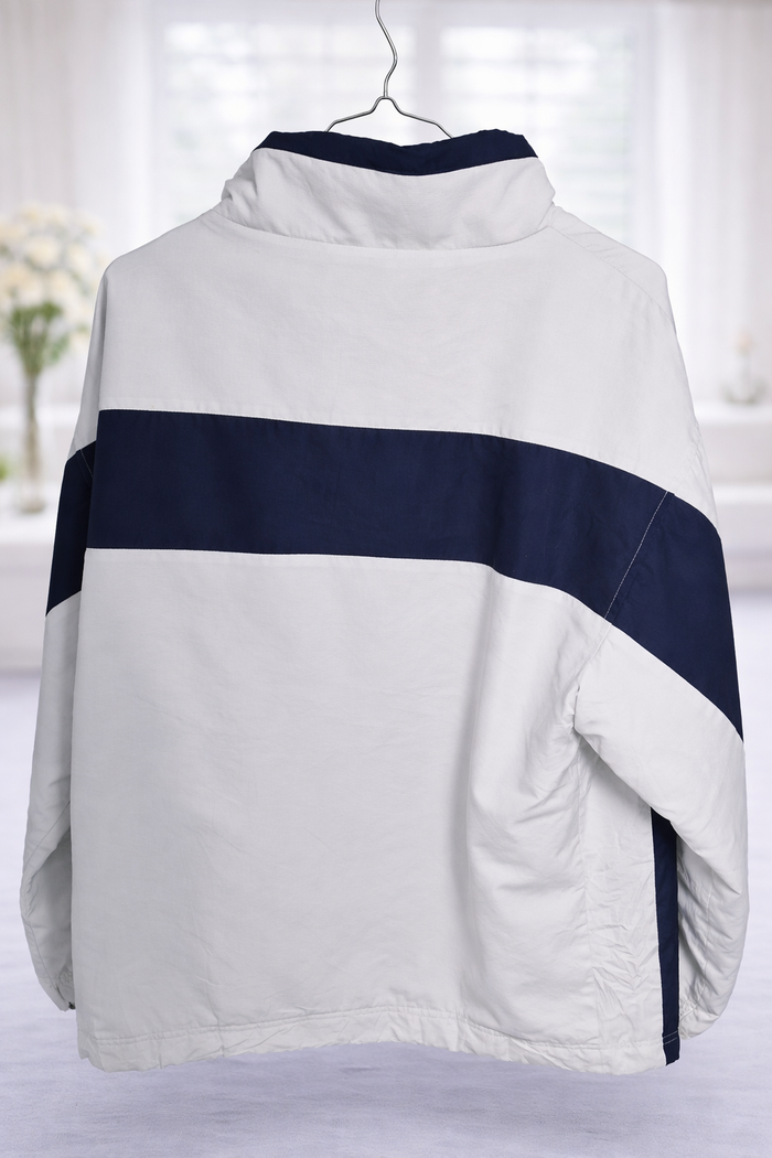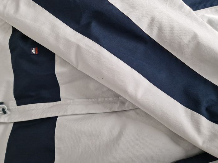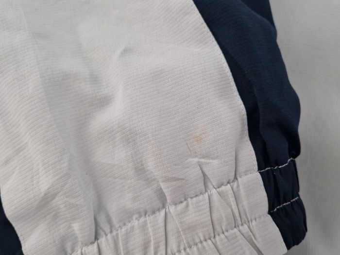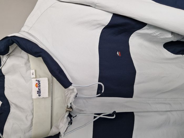 🧥 Veste coupe-vent légère – Ellesse – Homme – Taille XL Superbe veste Ellesse originale au style sportif et rétro, très tendance. Son coloris gris clair rehaussé de bandes bleu marine lui donne un look streetwear facile à porter au quotidien. ✔️ Matière légère et confortable, idéale pour la mi-saison ✔️ Capuche avec cordons de serrage ✔️ Fermeture zippée ✔️ Poches zippées pratiques ✔️ Coupe ample typique du streetwear, agréable et moderne ✔️ Parfaite pour les journées venteuses ou les sorties décontractées 📌 À noter (transparence totale) : Présence de micro-taches noires très discrètes sur une manche (quasi invisibles une fois portée, dont une près du bout de la manche). Cela est pris en compte dans le prix. 👤 Pour : Homme 📏 Taille : XL 📐 Mesures à plat : - Largeur aisselle à aisselle : 65 cm - Longueur totale : 76 cm
