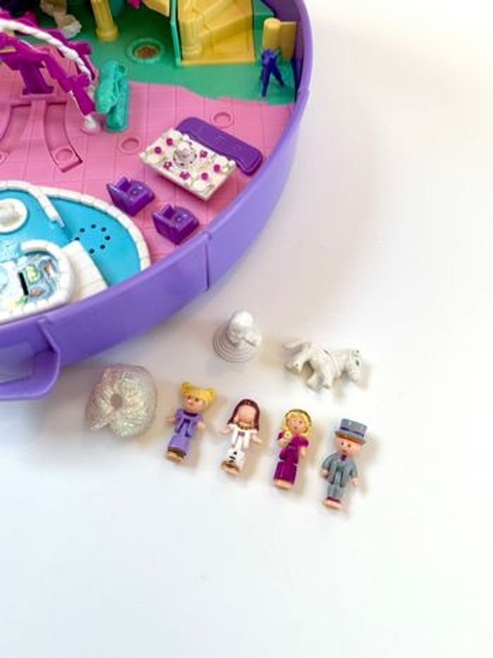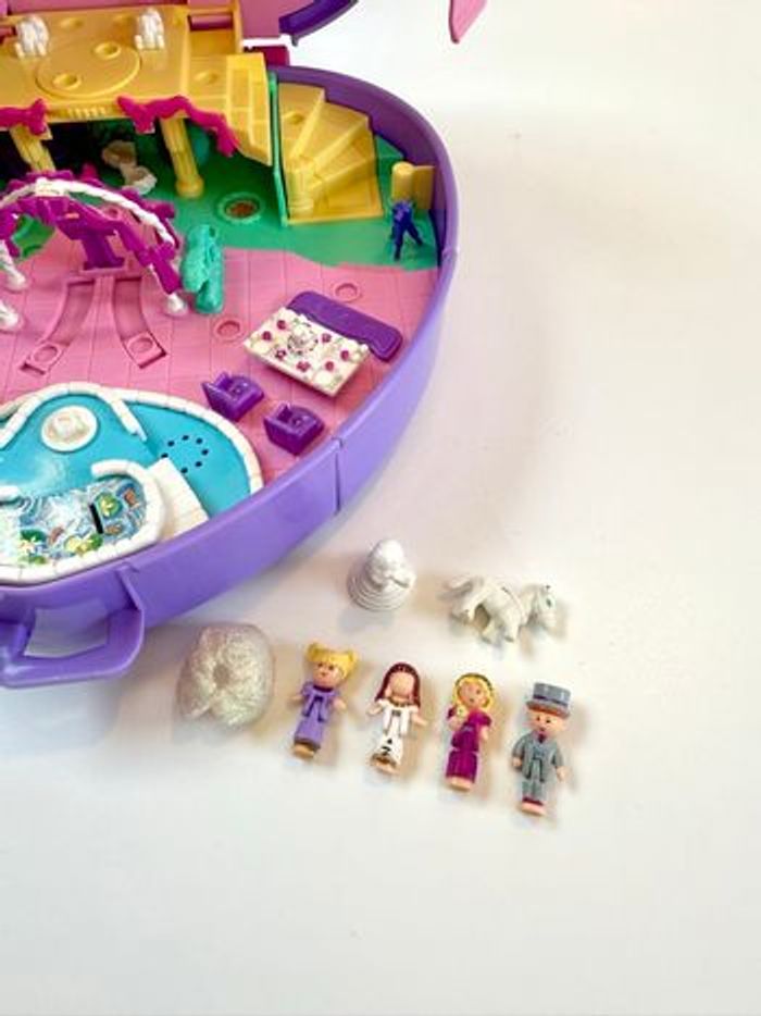 Plonge dans la magie des années 90 avec ce Polly Pocket “Le merveilleux mariage de Polly” (Bluebird Toys, 1994) ! Un coffret collector emblématique en forme de ballon violet, qui s’ouvre pour révéler un somptueux mariage dans un jardin féérique ✨ Wonderful wedding 90% COMPLET 💖 Description : À l’intérieur, un grand hall avec chambres et escalier, un magnifique jardin, une piste de danse, une fontaine, une piscine et même un piano ! Les petits personnages peuvent se déplacer dans tout l’univers pour célébrer le mariage de Polly sous les arches fleuries 🌸 🧍‍♀️ Contenu : • 4 figurines d’origine : Polly, Rebecca, la mariée et le marié 👰🤵, bien regarder pour l’état, assez souple • Le cheval blanc 🐴 • La robe nacrée ✨ ⚠️ Manques : • Le voile de la mariée • La calèche • Le logo doré sur le dessus du coffret Coffret en très bel état, propre et coloré, idéal pour collectionneurs ou fans de jouets vintage 💜 📦 Envoi rapide et soigné 💬 N’hésite pas à demander plus de photos ou infos ! #PollyPocket #PollyPocket1994 #PollyPocketVintage #BluebirdToys #PollyPocketCollector #VintageToys #Toys90s #CollectionVintage #PollyPocketFrance #MariageDePolly #RetroToys #PollyPocketAddict #PollyPocketLovers #Années90 #Nostalgie90s