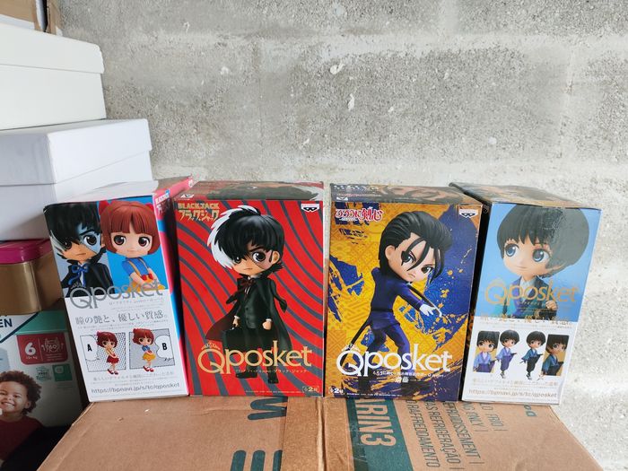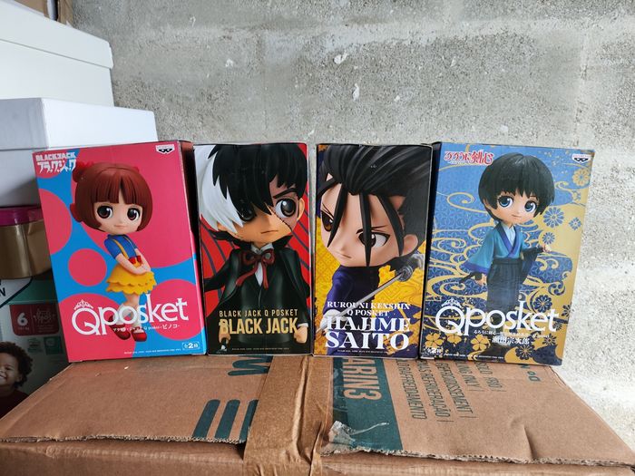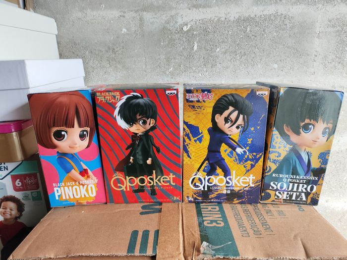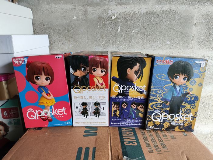 Profitez de mes réductions si plusieurs articles achetés Pack de 4 Figurines Banpresto QPocket : - Hajime Saito de Kenshin le Vagabond - Sojiro Seita de Kenshin le Vagabond - Black Jack de BlackJack - Pinoko de BlackJack Boîtes neuves jamais ouvertes