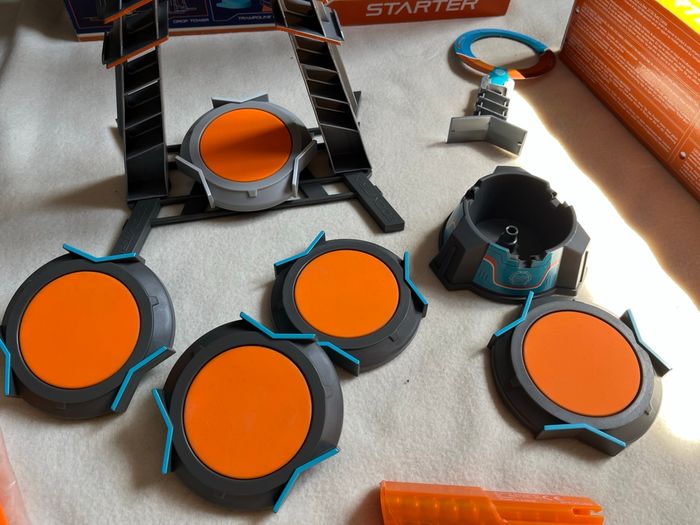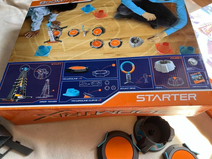 vends ce jeu de société pour enfants à partir de huit ans boom Trix X’Trême trampoline action avec le tout au complet un lanceur quatre trampolines (deux trampolines incurvés) un anneau et un but fourni avec vingt quatre billes juste le lanceur qui a une pièce défectueuse mais rien empêchant le bon fonctionnement 5 euros Mes autres annonces de jeu #lma42jeu #lma42garcon8 #lma42garcon10 #lma42garcon9 #lma42fille10 #lma42fille8 #lma42fille9