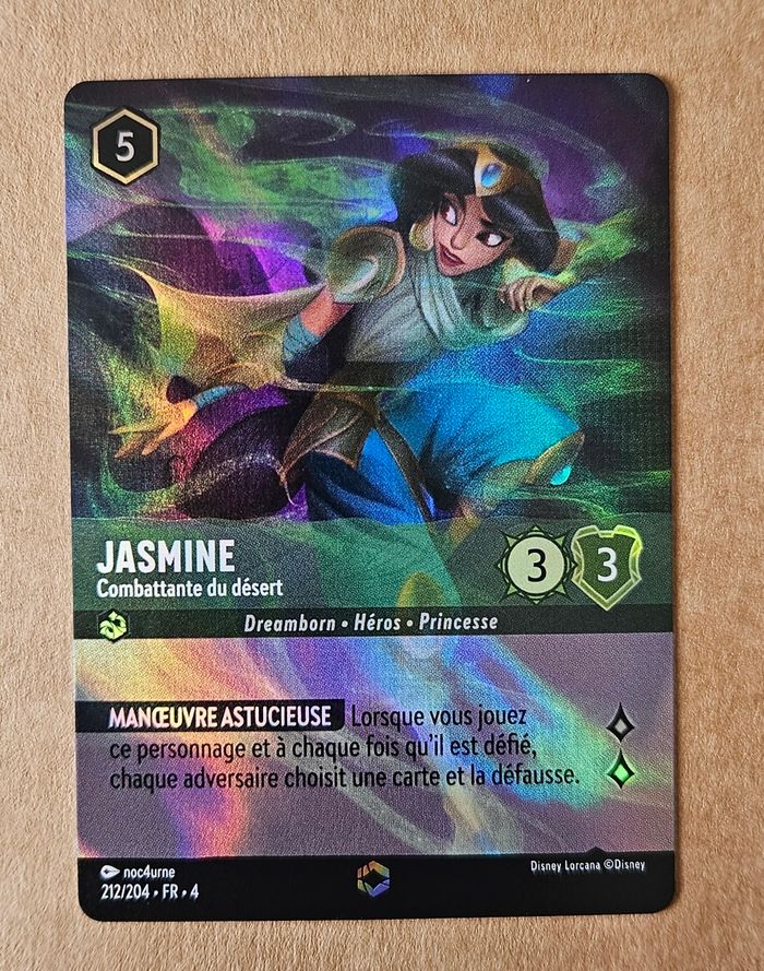 Vends carte Lorcana Chapitre 4 Jasmine Combattante du désert. Carte enchantée n°212/204 État NM, envoi rapide et soigné