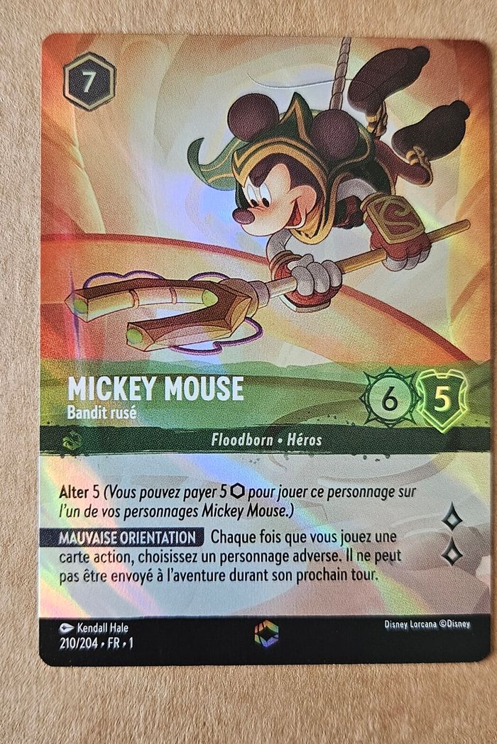 Vends carte Lorcana Chapitre 1 Mickey Mouse Bandit rusé. Carte enchantée n°210/204 État NM, envoi rapide et soigné