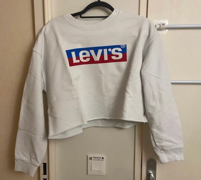Vend un lot de 2 sweat pour femmes en excellent état : - Sweat Lévis de couleurs blanche, flocage en excellent état, taille M, il mesure 48cm de largeur et 50cm de longueur - Sweat Hollister couleurs crème, écriture intacte, Taille L, il mesure 40cm de largeur et 49cm de longueur Le lot est indissociable
