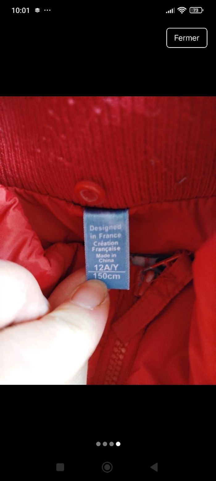 Bonjour je vends un manteau sans manche rouge, taille 12 ans, de la marque Okaïdi