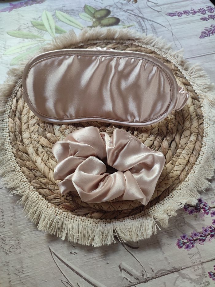 Masque de nuit et chouchou assorti marron - photo numéro 1