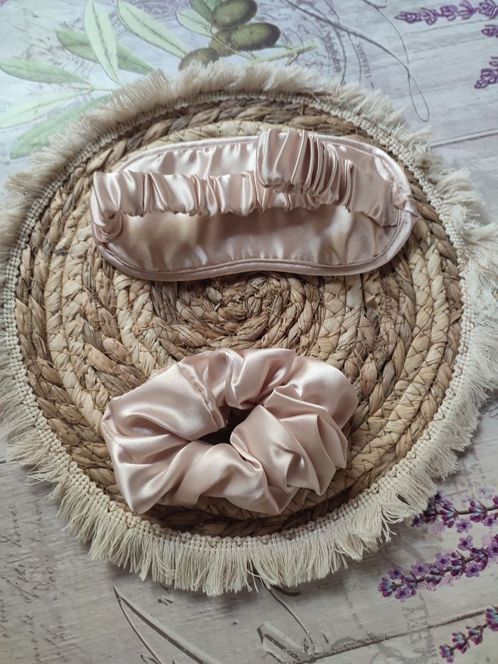 Masque de nuit et chouchou assorti marron - photo numéro 3