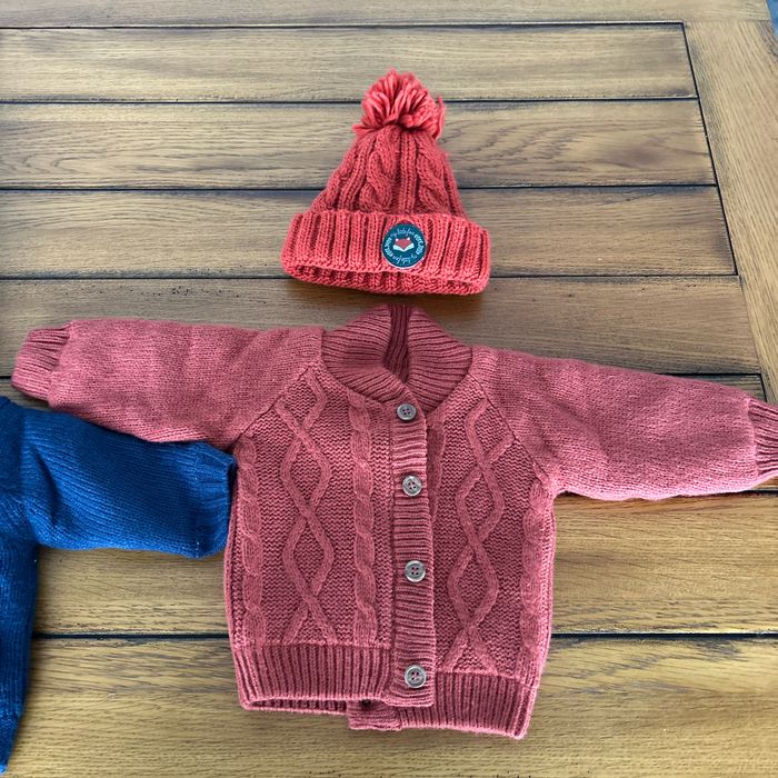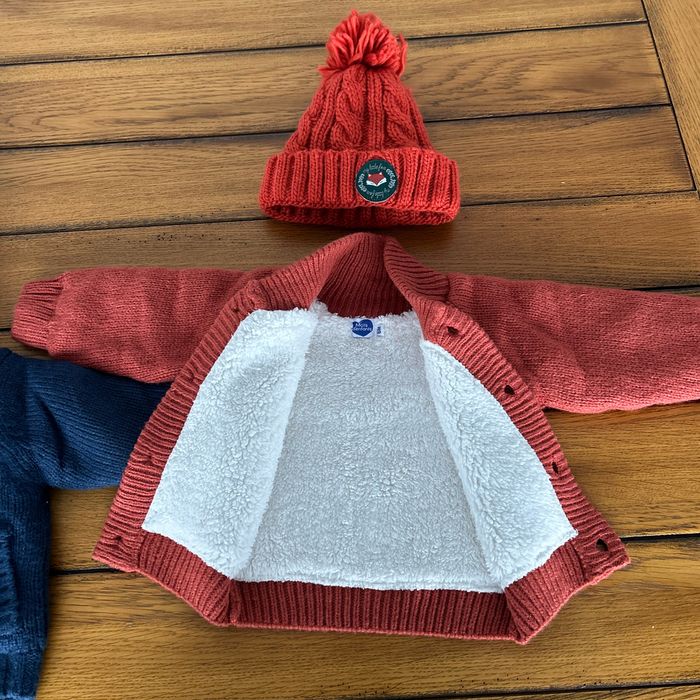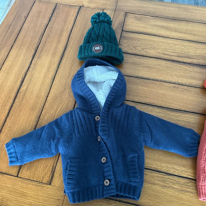 2 beaux gilets bien chauds avec bonnets Taille 6 mois peut très bien convenir jusqu’à 12 mois