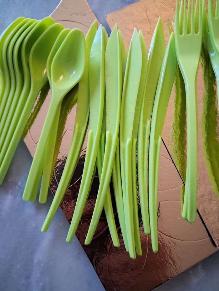 Lot de couverts plastique vert - photo numéro 1