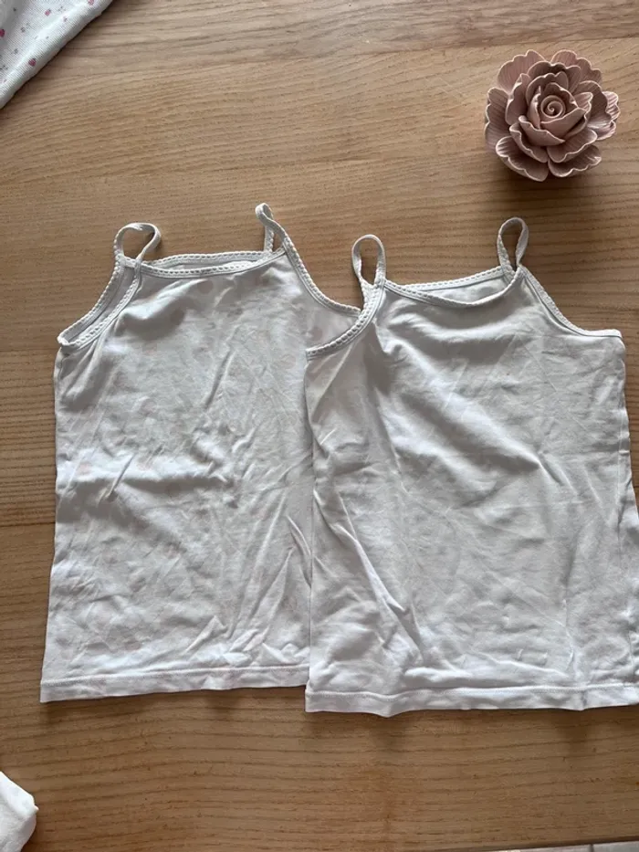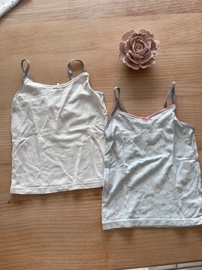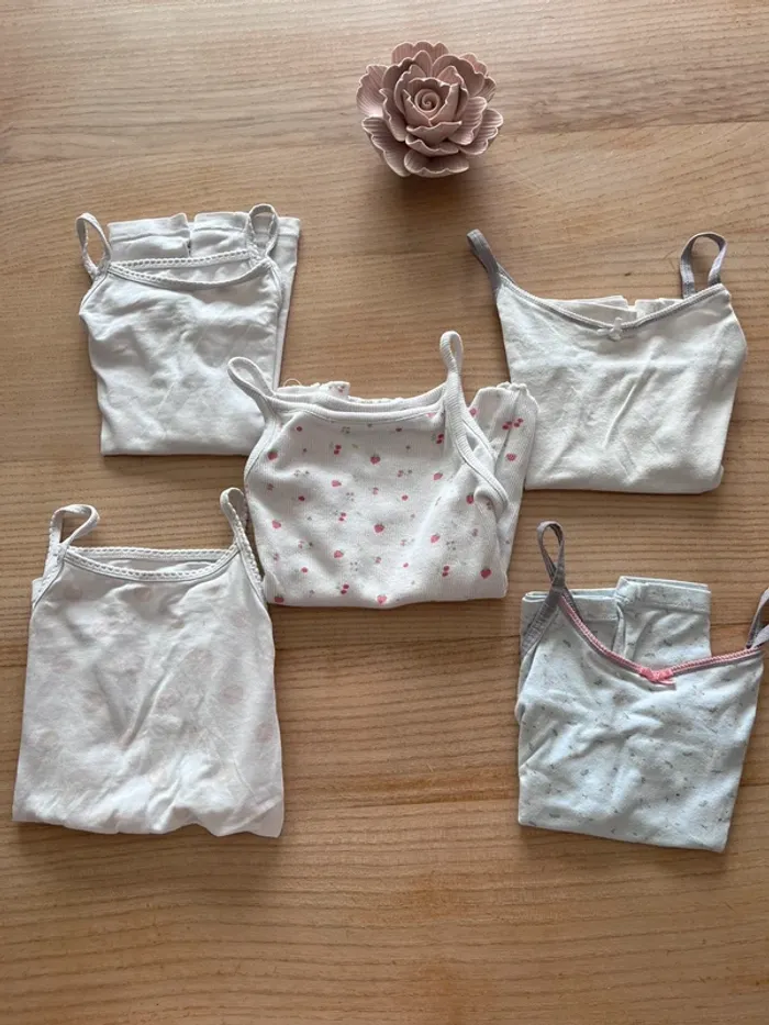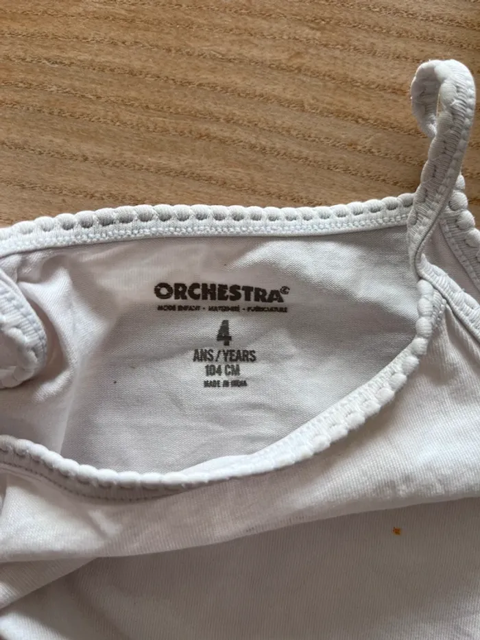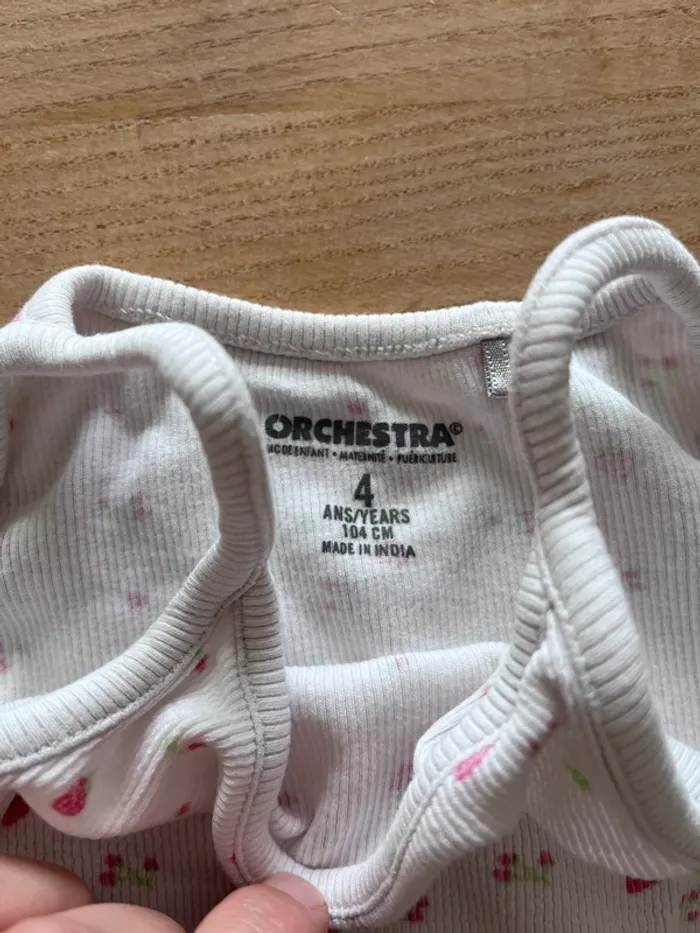 Lot de 5 débardeurs en 4 ans Un orchestra petites fraises en parfait état Deux orchestra en bon état Deux Kiabi en bon état