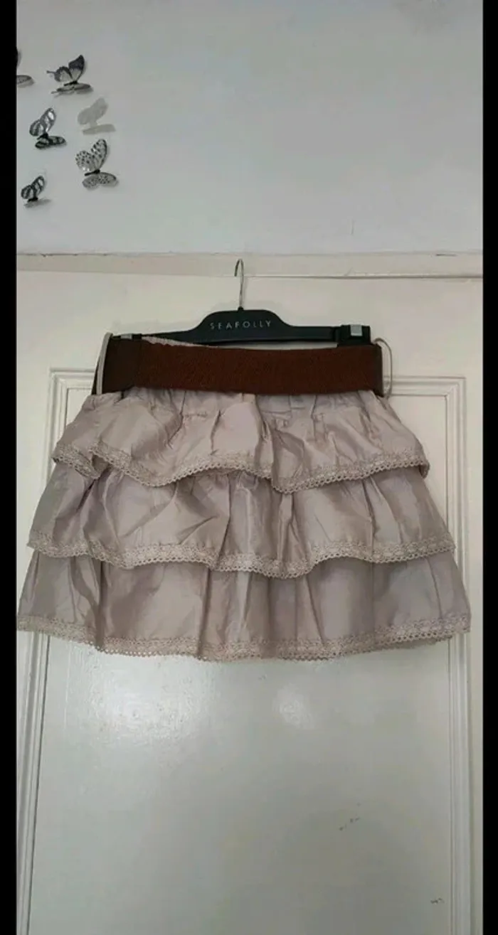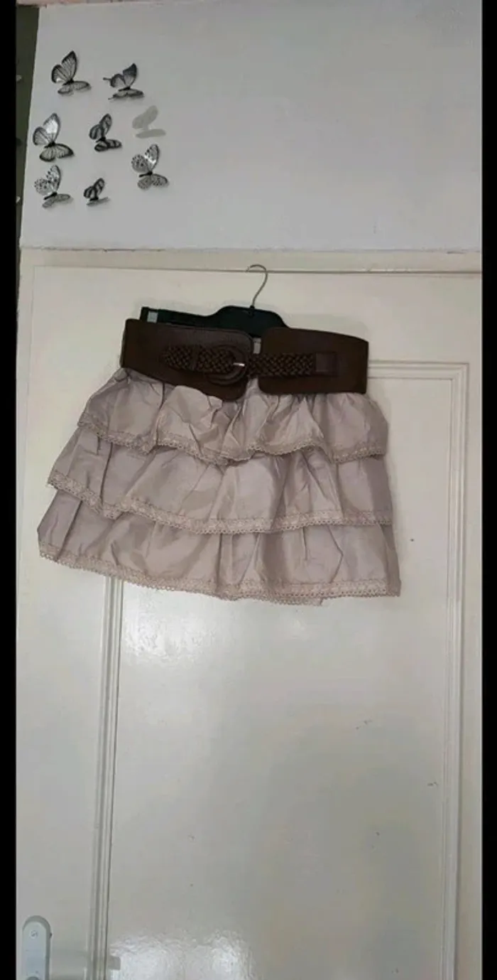 Jupe a volants avec grosse ceinture . Très bon etat Longueur 34 cm Largeur taille 30 cm a 47 cm en tirant sur l'élastique #geliscyrilletailleS #geliscyrilletaille36 ##c11