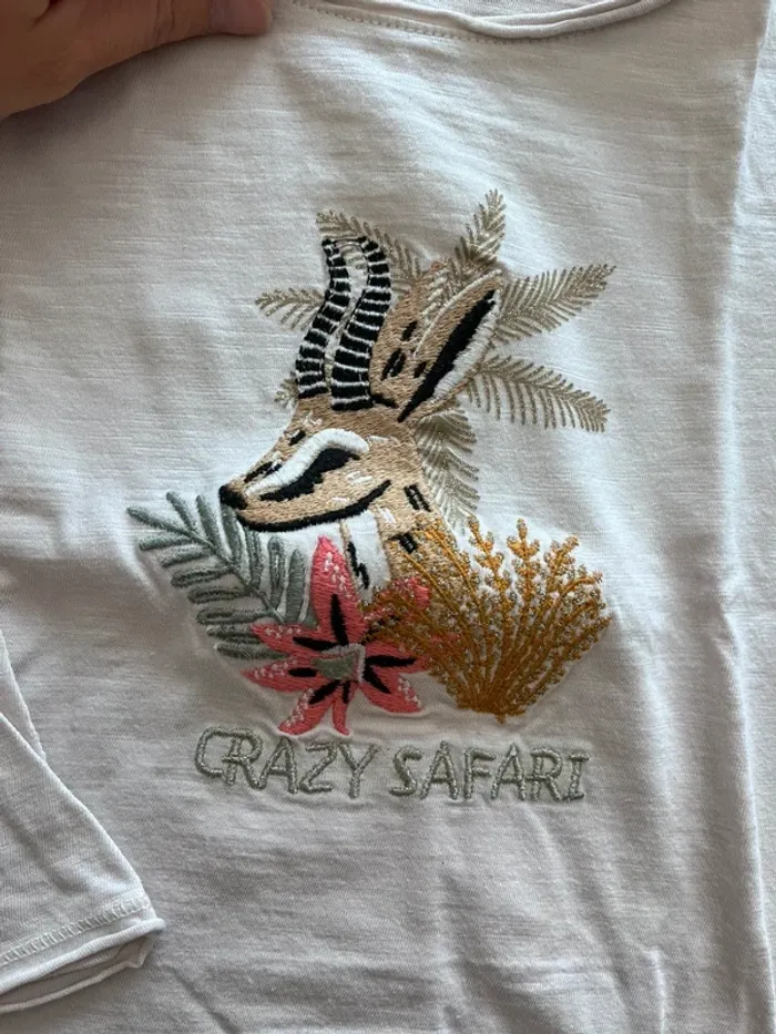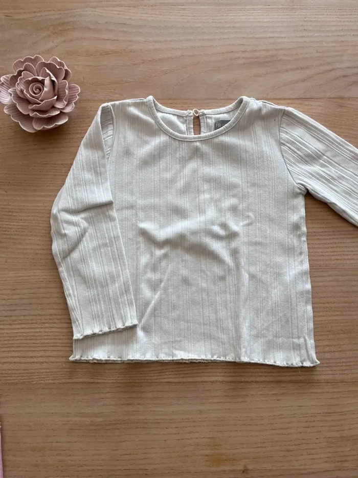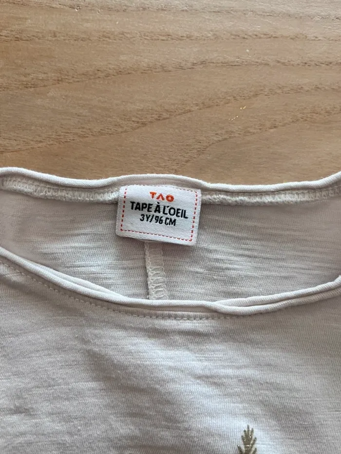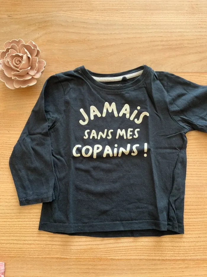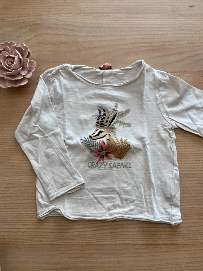 Lot de 4 t-shirts manches longues en 3 ans - blanc "crazy safari" tape à l’œil (petite tache sur une manche) - bleu marine "jamais sans mes copains" NPO - crème primark - rose Vertbaudet sous pull thermique Ont tous été portés
