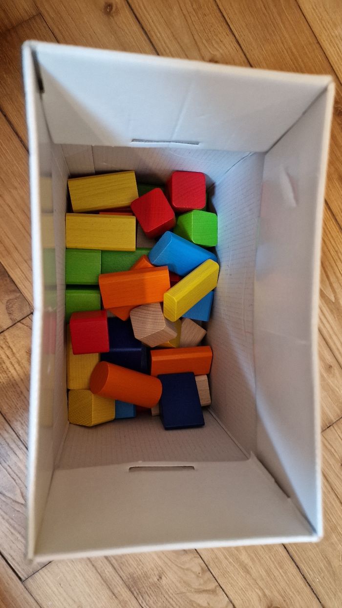 Jeu de cubes en bois, formes et empilement pour tout petit Jeu complet en très bon état