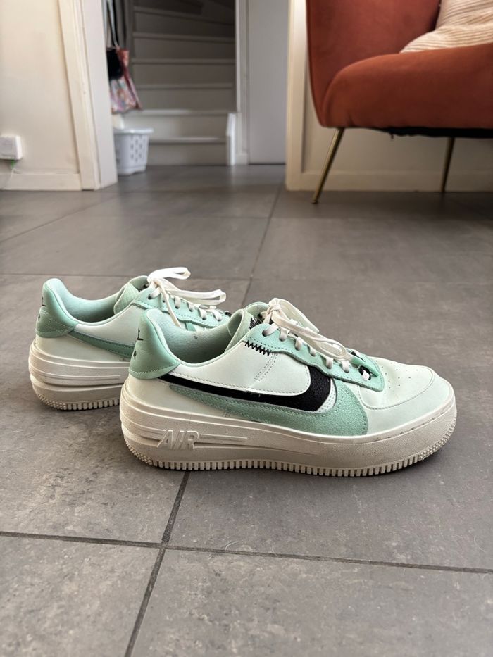 Jolie basket Nike Air Force 1 PLT.AF. ORM Barely Vert, peu porté, très bon état. Basket mixte.