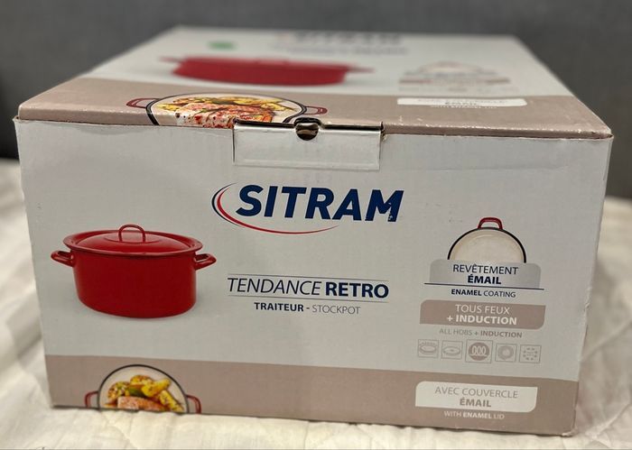 Grand faitout Diamètre 28 cm Marque Sitram Tendance rétro Revêtement en émail Tous feux dont induction Neuf.