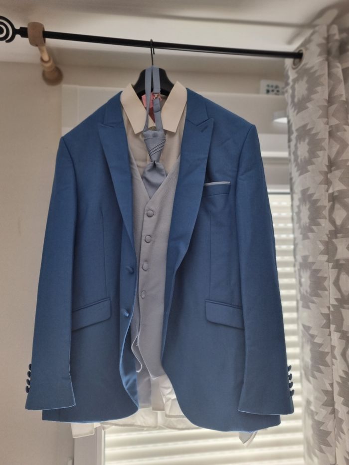 Bonjour, je vends un costume complet Couleur bleue fabriquer dans une boutique de mariage fais sur mesure Un petit prix 300 euros et de marque adimo cérémonie Si vous êtes intéressé, contactez-moi.