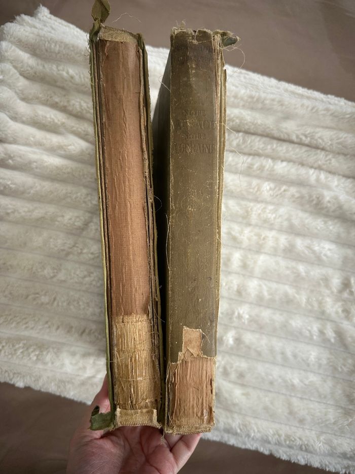 Les 2 tomes de Notre Alsace Notre Lorraine Édition de 1920 Les livres sont vieillis par le temps. Les couvertures sont usées et le dos se détache Les pages ont jauni mais sont toutes là! C’est une édition rare Disponible sur Rouen et alentours ou envoi par colis