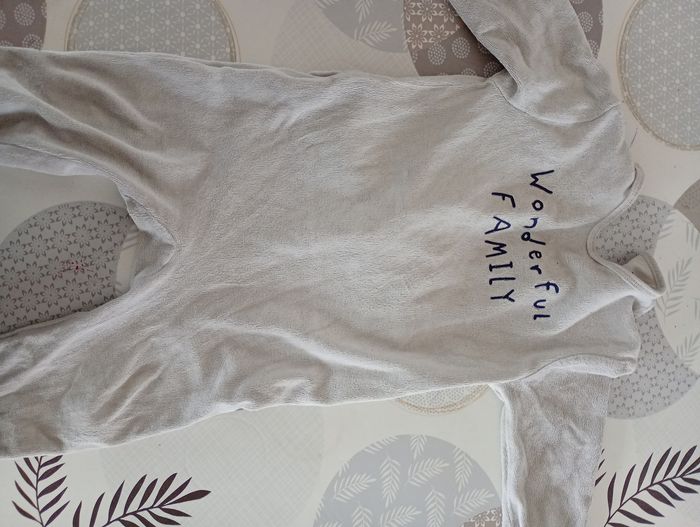 Vends un lot de 15 vêtements 24 mois pour fille Les vêtements ont été portés et sont encore en bon état général Lot de : 2 pyjamas chaud une pièce marque kiabi. Le pyjama crème est légèrement taché en dessous de l'inscription "wonderful family". 7 bodys de différentes marques sergent major, kiabi, autres marques inconnues. Certains sont légèrement tachés voir photos et un avec du feutre jaune sur le derrière (ma fille adore mettre du feutre sur ses vêtements pour les personnaliser 😂). 2 jeans en parfait état un Obaïbi et un bébé rêve 1 legging forme hibou d'une marque anglaise. Sur l'étiquette il est indiqué 12-18 mois mais cela correspond à un 24 mois car la taille est de 86 cm. 2 tee shirt manches longues. Le crème est un peu taché sur le devant et sur l'arrière d'une manche comme le montre les photos 1 gilet Kiabi en parfait état Lot vendu à 3 euro soit 20 centimes le vêtement
