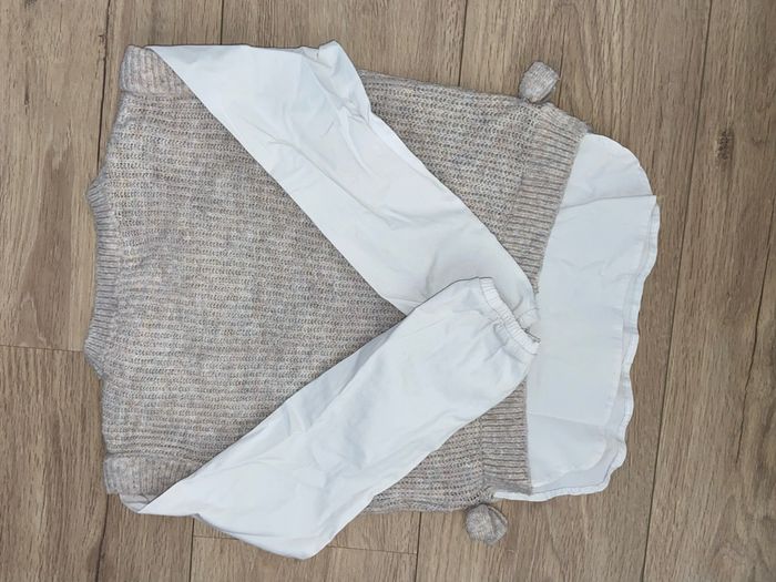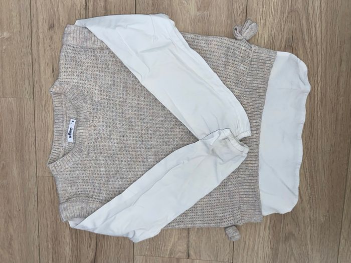 Pull beige avec manches blanches style chemise Marque GEMO Taille 8 ans Bon état
