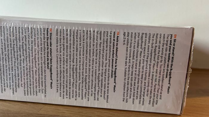 Planche poussette Lascal BuggyBoard Maxi + avec assise et plateforme NEUF Convient pour les enfants de 2 à 6 ans pesant jusqu’à 22 kg Peut être utilisé avec ou sans assise Aucun outil nécessaire – attachez la planche uniquement à l’aide des connecteurs Easy-Fit Largeur et longueur facilement ajustable Surface extra-large antidérapante, roues durables et suspensions intégrées Conforme aux normes de sécurité de l’UE et des USA relatives aux produits pour bébés Dimensions de la plateforme Longueur : 21,0 cm x Largeur : 44,5 cm x Hauteur : 18,5 cm Poids : 2 kg Couleur : noir Matériau : Plastique durable et recyclable Compatibilité : Compatible avec la plupart des poussettes standard Capacité de charge maximale : Convient aux enfants jusqu'à 22 kg Tranche d'âge : Idéal pour les enfants de 2 à 6 ans Etat : neuf Prix : 90 euros Remise en mains propres sur Paris 11ème ou envoi via un relais (pas de locker) #bébé #enfant #neuf #accessoire #poussette