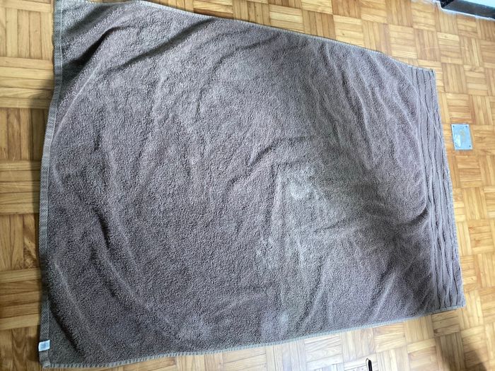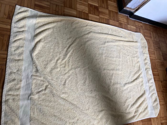 Lot 2 draps de bain 1 marron 95/136 1 jaune 95/139 Bon état