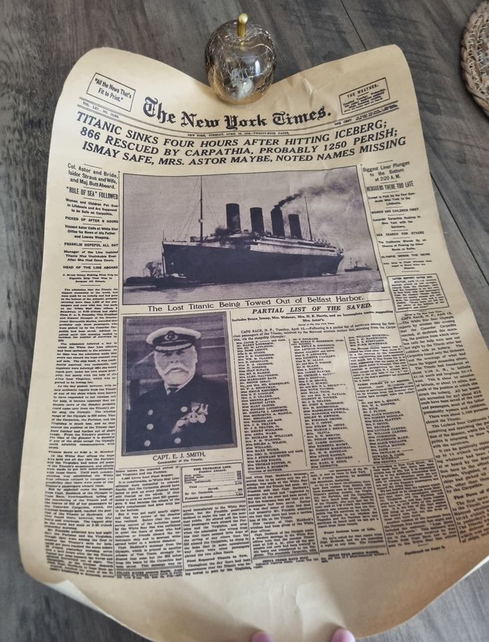 Très belle et vintage affiche ou poster du journal du Titanic " The New York Times " Impression sur du papier kraft epais