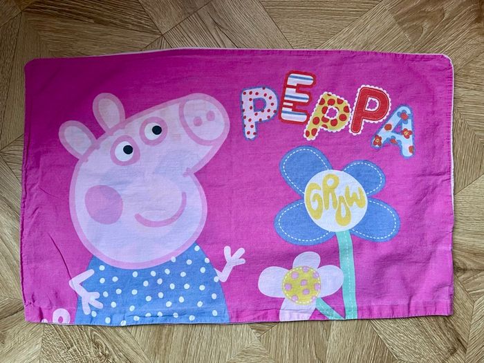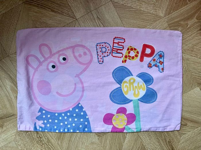 Parure de lit 2 pièces 100 % coton Peppa Pig Housse de couette 100 x 135 cm Taie d'oreiller 40 x 60 cm (réversible avec deux motifs différents) Convient pour un lit enfant 1 place 60x120 ou 70x140 A venir chercher sur place à Houilles (78, proche 95 ou 92) ou envoi possible.