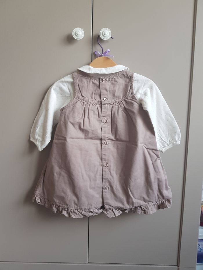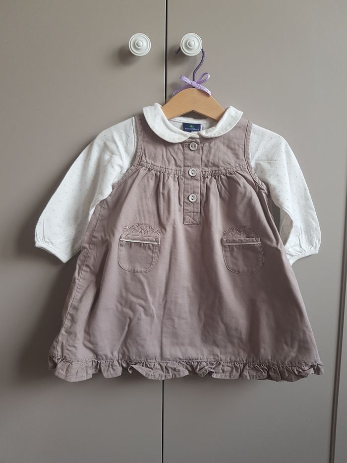 Un bel ensemble robe et t-shirt manches longues assorti taille 18 mois La robe est doublée et se boutonne dans le dos très peu portée Le t-shirt manches longues col claudine se boutonne devant comme une chemise portée un peu plus