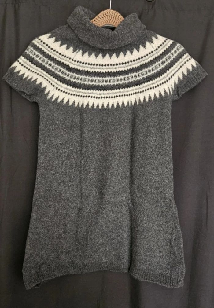 robe pull en laine, manches courtes, à porter de préférences avec des bas, col au niveau du cou