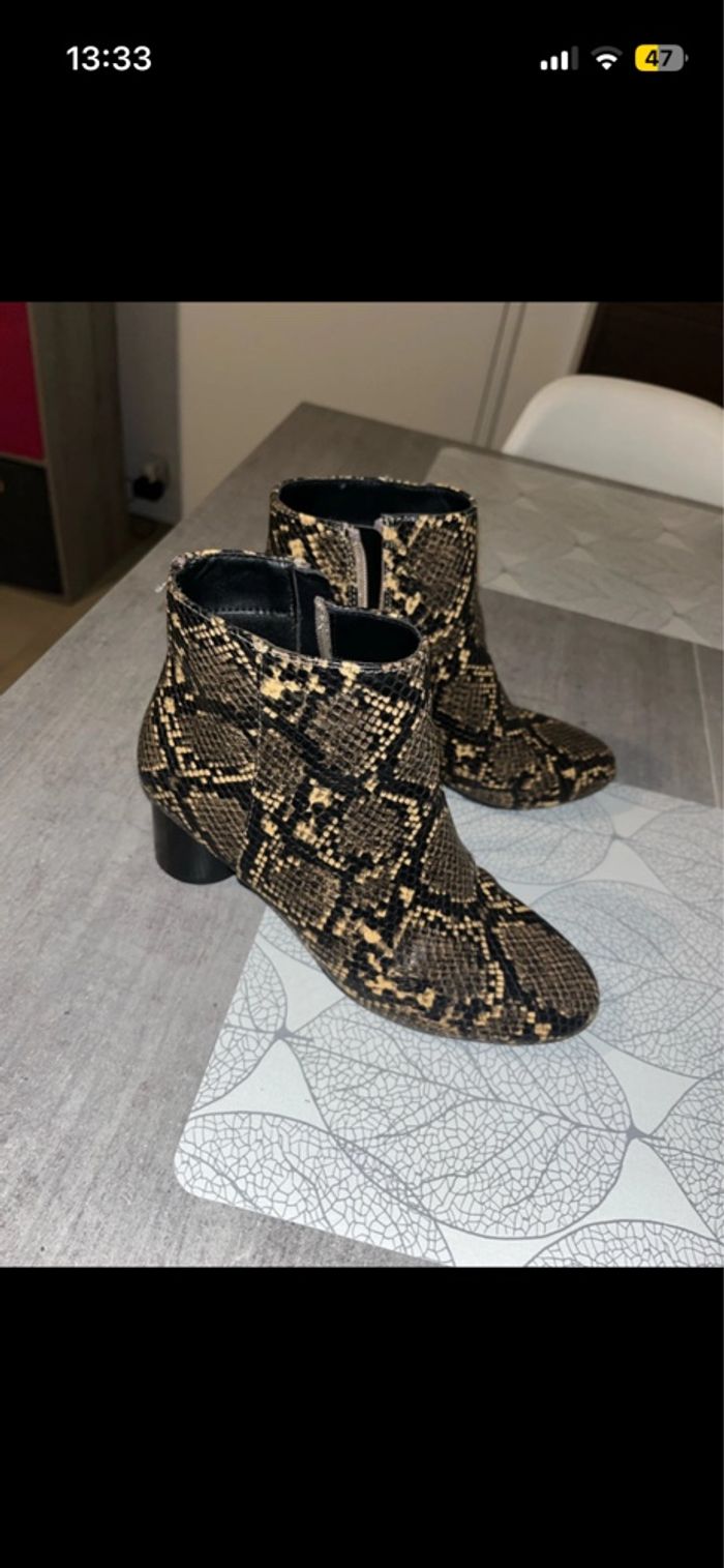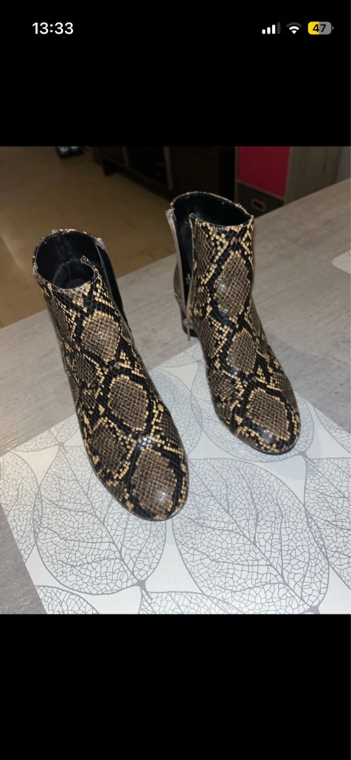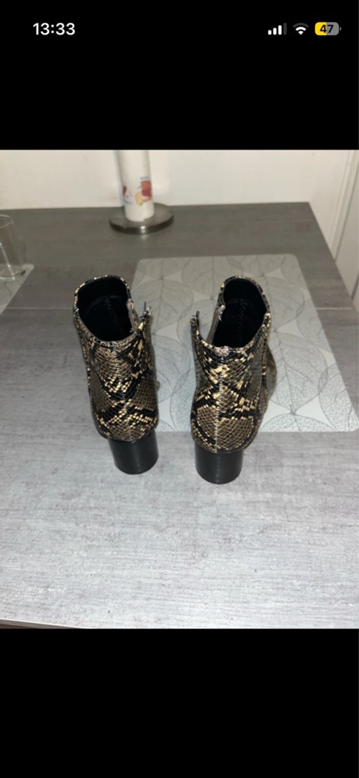 Petites bottines à talon très confortable, un petit peu abîmé en bout de chaussure droite