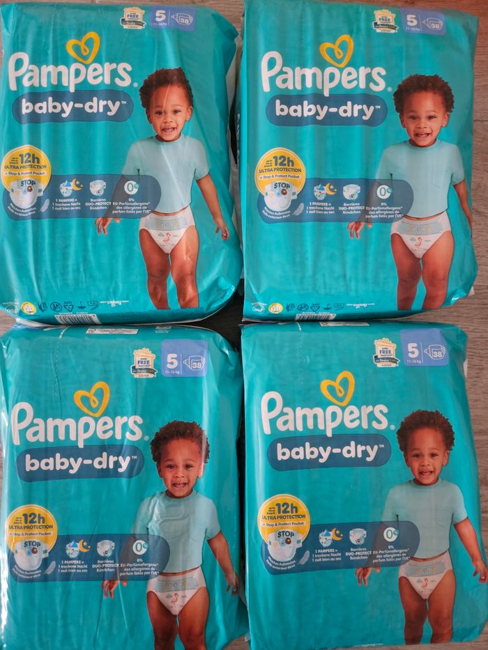 4 paquets de pampers baby dry soit 152 couches Mon fils étant devenu propre je me débarrasse du restant