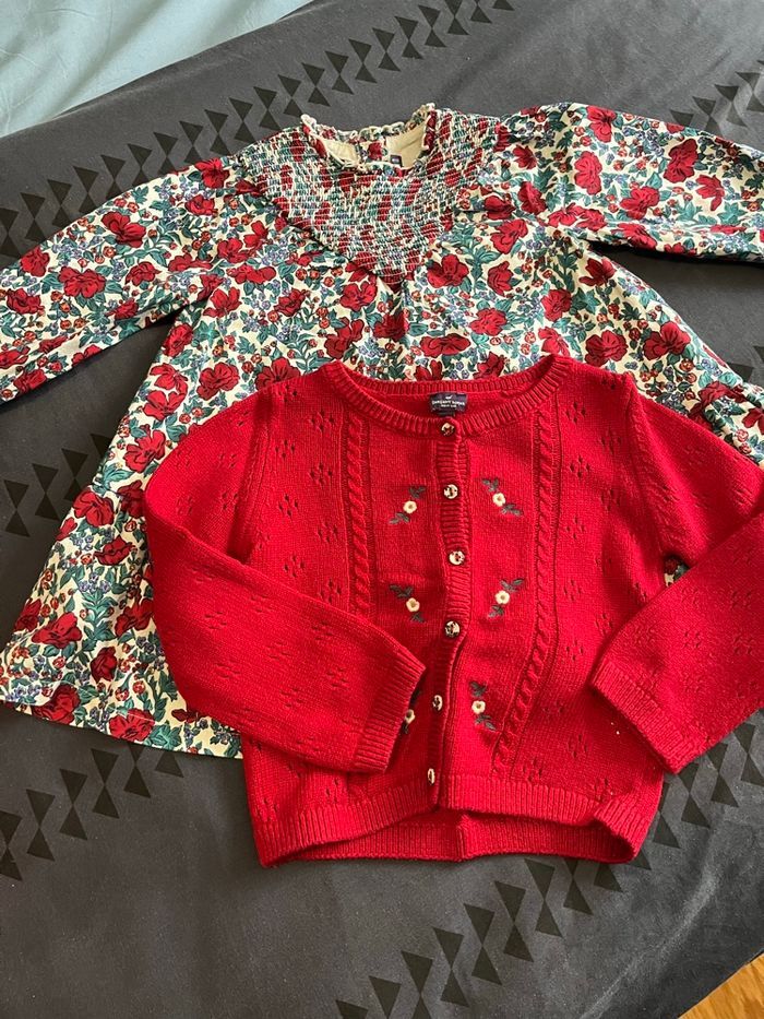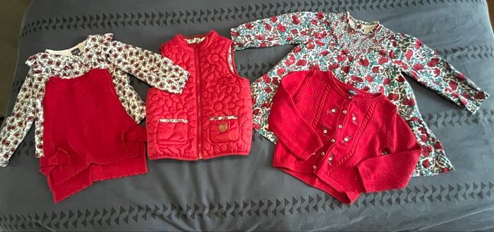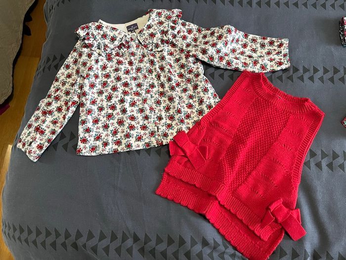 Lot sergent major en 36 mois comprenant Chemisier avec pull sans manche en 2/3 ans Robe et gilet assorti 36 mois Ps doudoune plus disponible