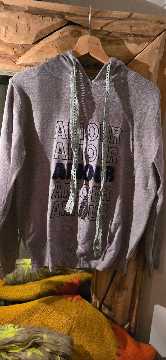 Pull casual Très tendance "Amour" Convient pour XS/ S et M Gris