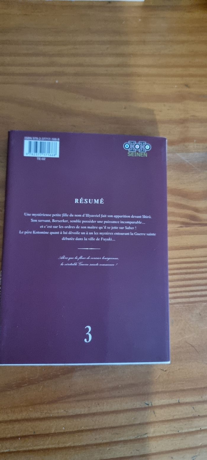 Je vends ce manga "Fate stay night Heaven's Feel" de la série Fate. - Titre : Fate stay night Heaven's Feel tome 3 - Genre : Bande dessinée & manga - Éditeur : Ototo Bon état N'hésitez pas à me contacter pour plus d'informations !