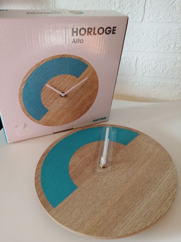 Horloge Alto, à fixer au mur Fonctionne avec 1 pile LR 06 (non fournie) Dimensions : 20 x 3,2 cm Marque : Anytime En super état, jamais utilisé