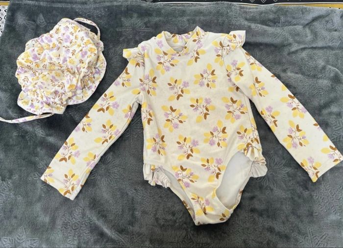 Ensemble de bain anti uv avec bonnet assorti taille 3 ans