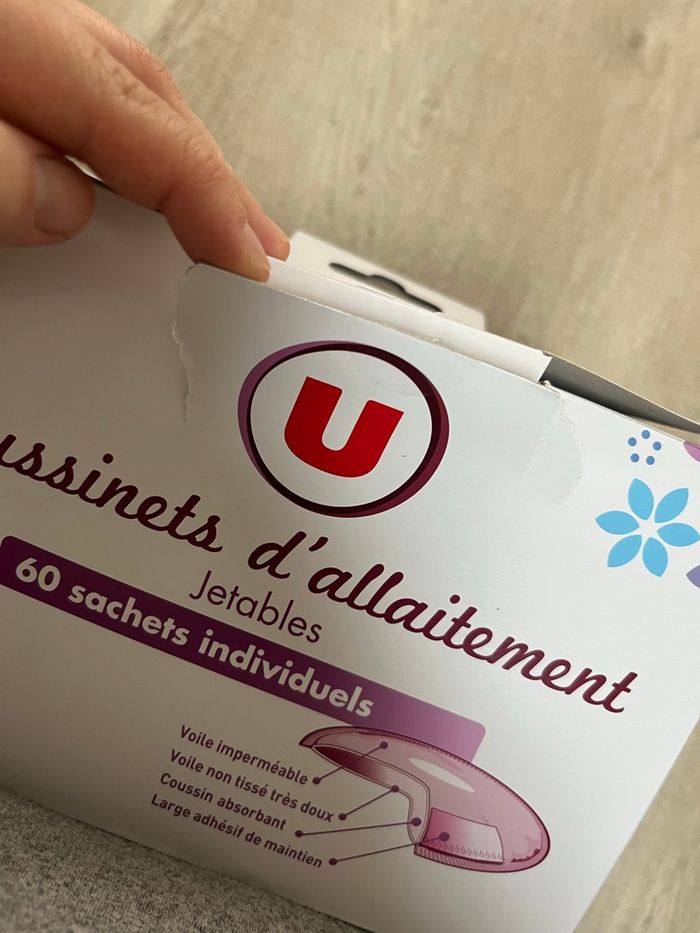 26 coussinets d’allaitement Marque U Couleur blanc La boîte est déchirer à l’ouverture voir photo