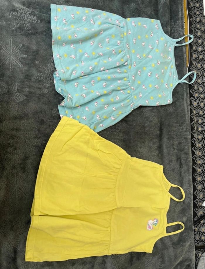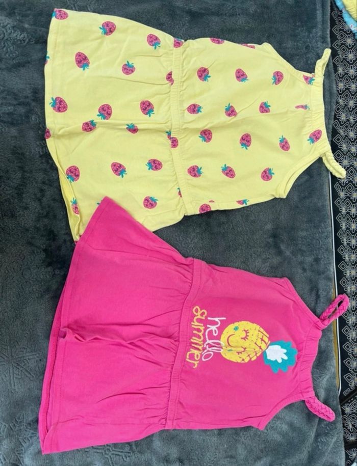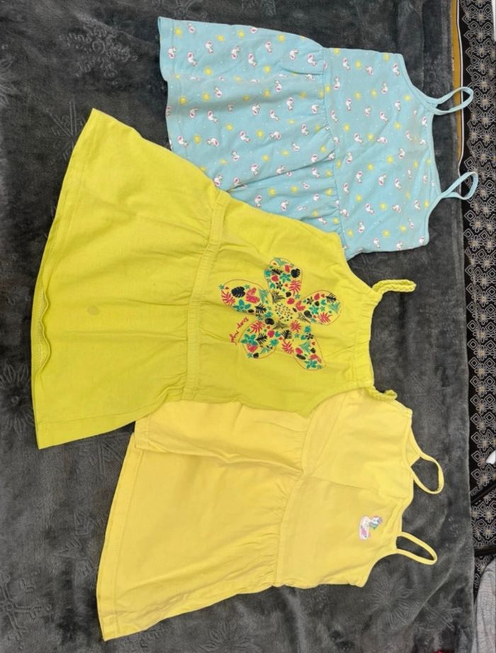 Lots de 5 robes en cotons idéal l’été taille 24 mois Une petite tache à peine visible sur la verte .