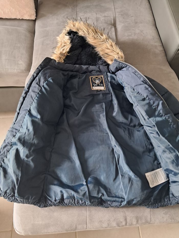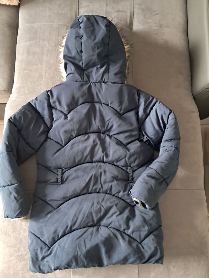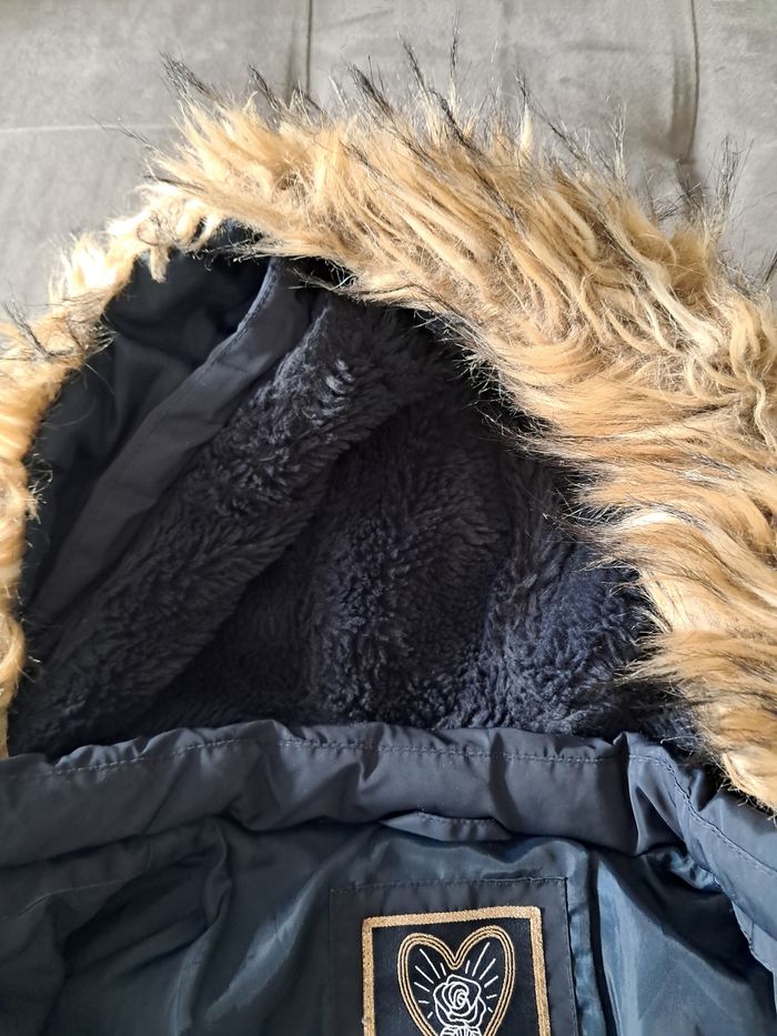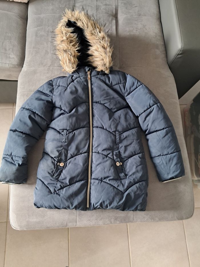 Doudoune bleu marine avec capuche chaude la fourrure de la capuche s enlève taille 128 marque C&A