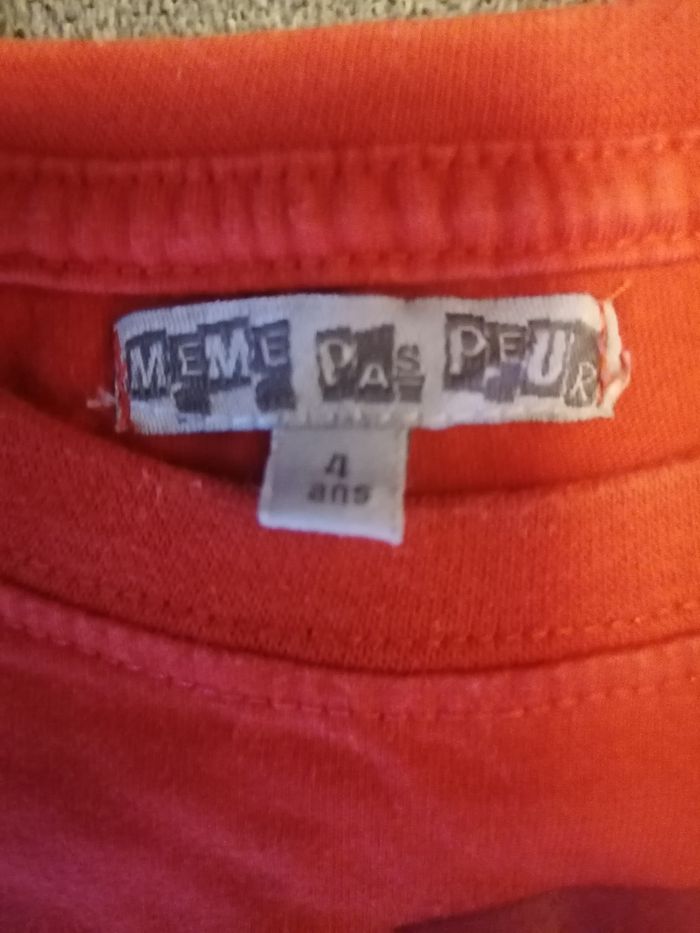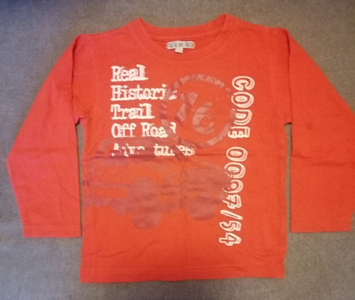 tee-shirt manche longue en très bon état taille 4 ans couleur orange sanguine