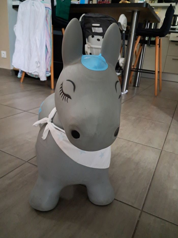 Cheval gonflable salissure d'usure Servi pour mes 2 enfants Se mettent a cheval et sautent