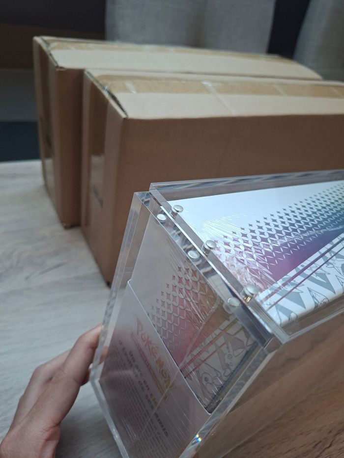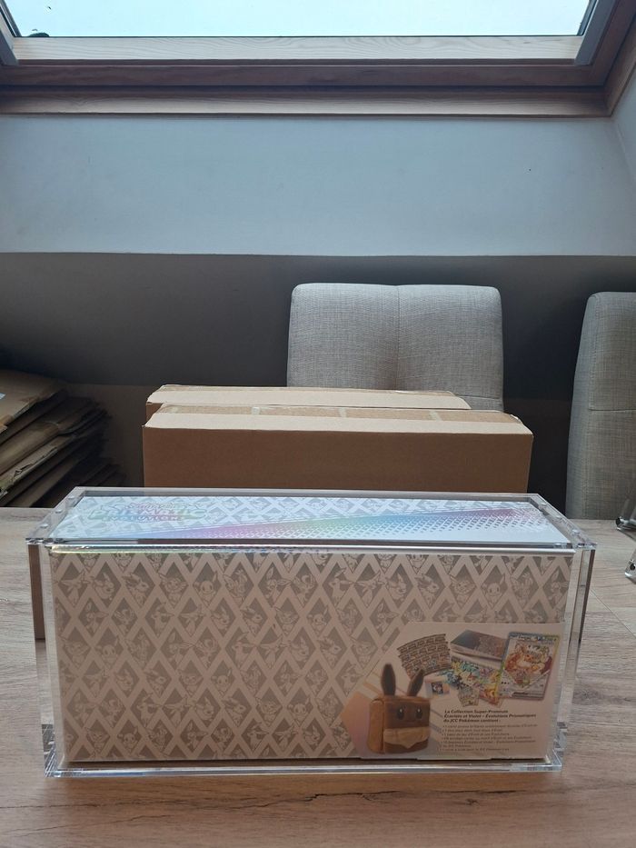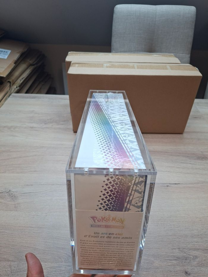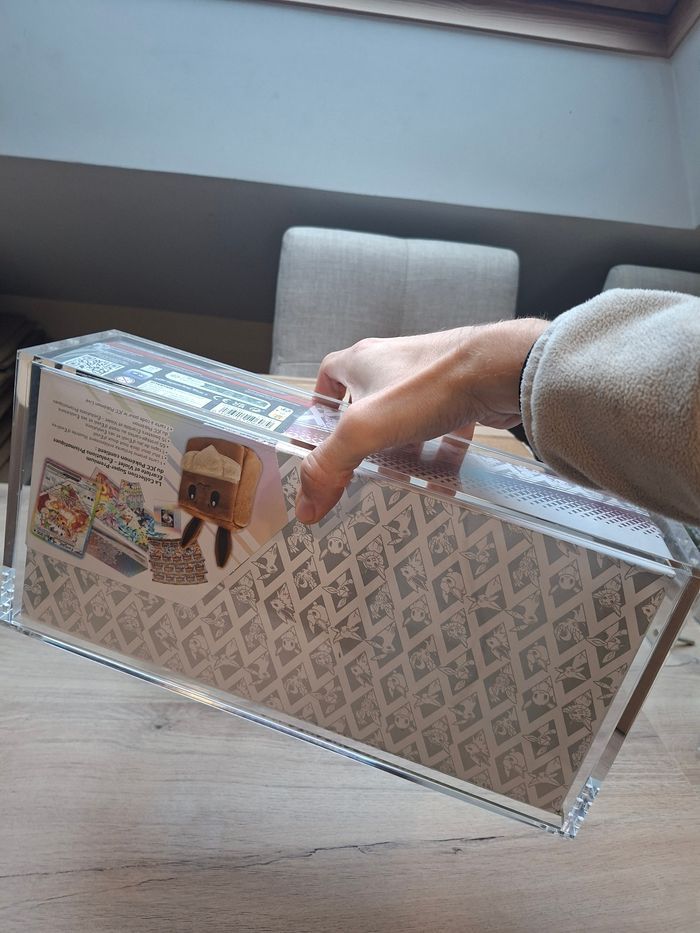 Bonjour 👋 Je vend ce lot de 2 protections acrylique aimantée premium, spécialement conçues pour les ULTRA PREMIUM EVOLI ev8.5 de évolution prismatiques Pokémon. Taille parfaite , l'acrylique ne bougera pas dans l'acrylique 🔥 💰 32€ l’unité , 64€ pour deux ! 😊 ✨ Caractéristiques : Acrylique épaisse et ultra rigide, de très haute qualité. Fermeture magnétique à 6 points avec gros aimants puissants pour un maintien parfait — rien ne bouge 💪 Protection UV, anti-choc et anti-humidité pour préserver vos upc évoli ev8.5 durablement. Ultra transparente (100%), offrant un rendu clair et net qui sublime votre collection. Chaque protection est neuve et emballée individuellement dans son emballage d’origine. 🧩 Compatibilité : S’adapte parfaitement aux ultra premium upc évoli Pokémon, avec un ajustement précis et sécurisé. 🔥 Offres spéciales : Profitez de belles réductions sur les achats en lot directement sur mon dressing ! -10% de réduction N’hésitez pas à me contacter pour toute question ou offre groupée personnalisée 😊