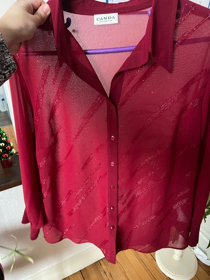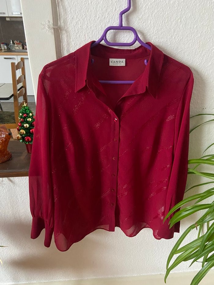 Vend ce magnifique chemisier bordeaux Canda avec pailletés en très bon état ! #chemisefemme #canda #grandetaillefemme