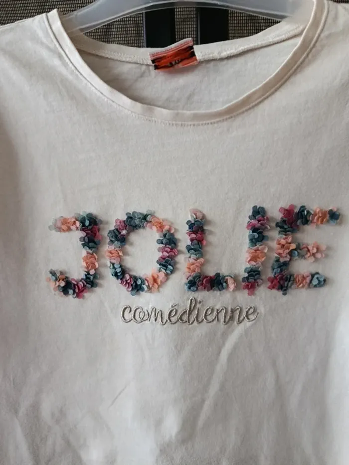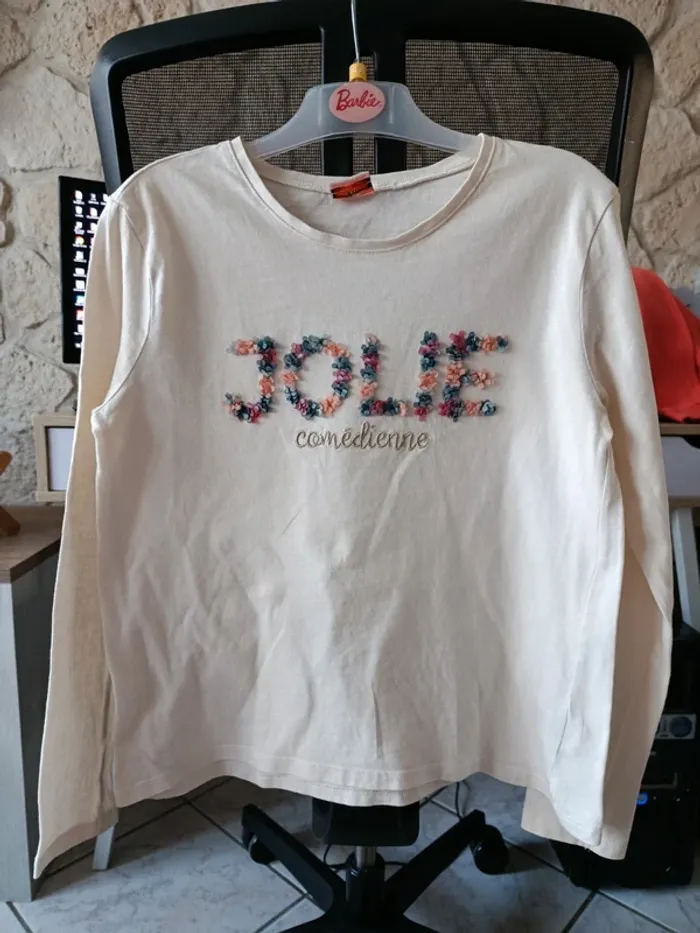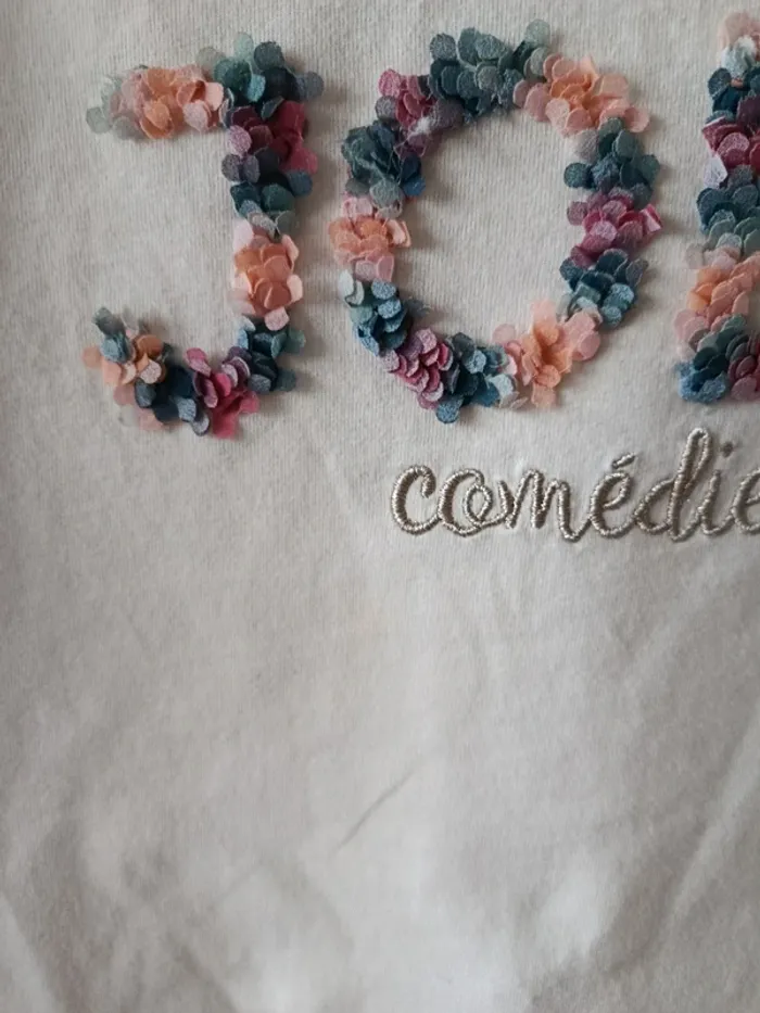 Maillot fille tao Manches longues Écriture petites pétales Petite tache en dessous de "comédienne" (dernière photo)
