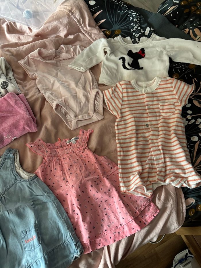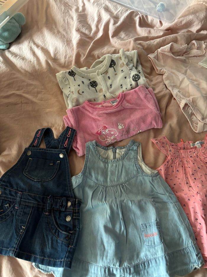 Deux pyjama chaud Trois robes Une combinaison éponge Un body manche courte col dentelle Un pull