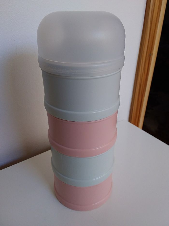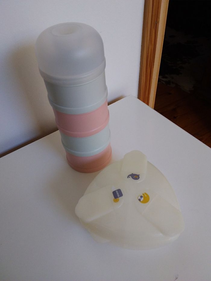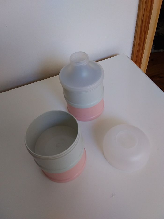 Elle sont pratiques, pour le transport, la promenade, chez mamie ou chez la nounou. 2 boîtes de doseuses de lait de la marque Mam et Suavinex. Très bon état.