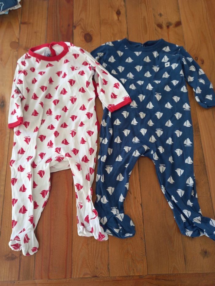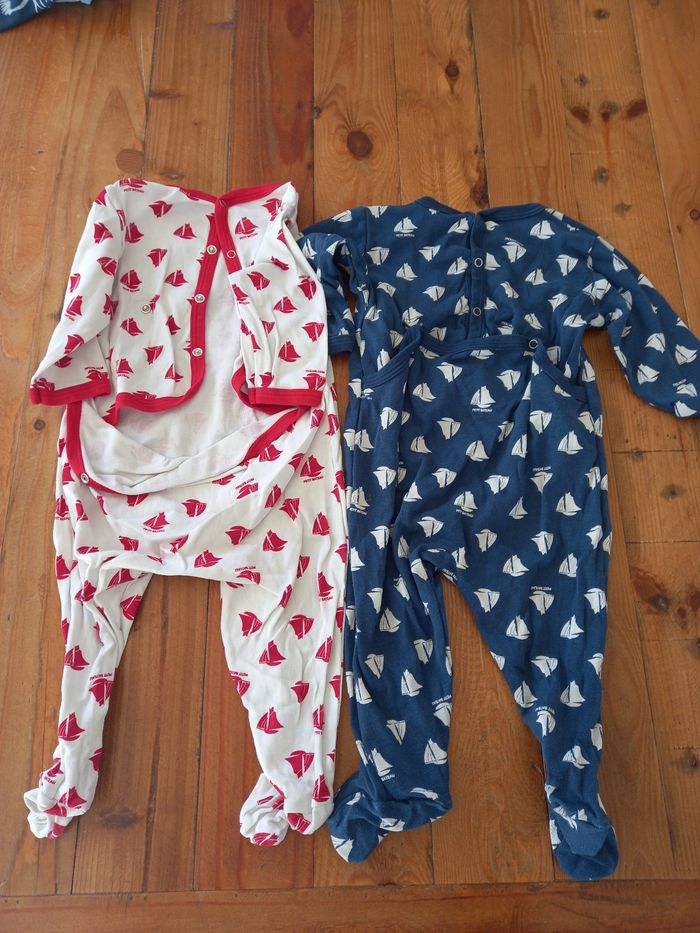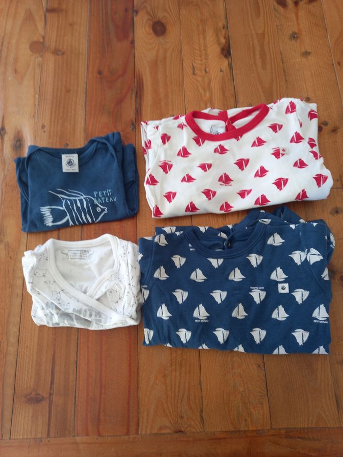 Lot de 2 pyjamas fins petit bateau taille 6 mois et de 2 bodies manches courtes de marque orchestra et petit bateau taille 6 mois Très bon état