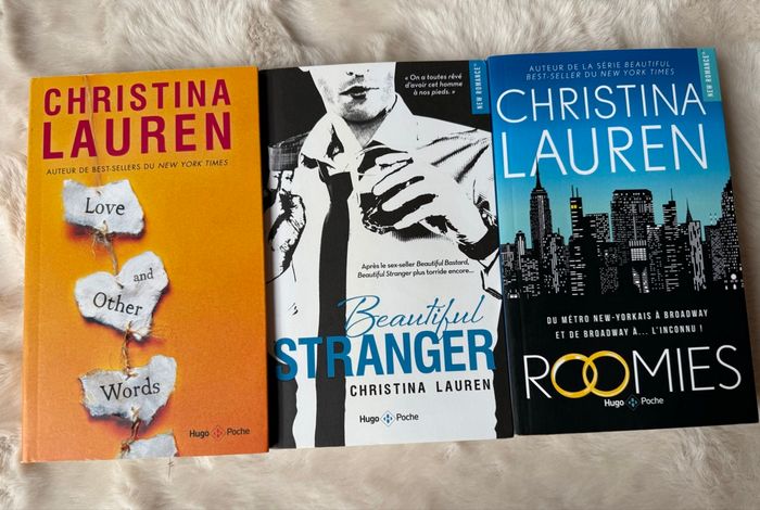 Lot de 3 livres / possibilité à l’unité pour 3€. Goodies offert. Love and other words Roomies Beautiful Stranger.