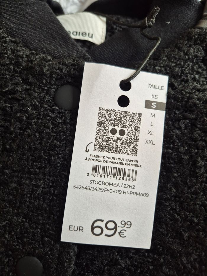 🧥 Blouson Noir en Simili-Cuir avec Boutons à Pressions Femme 🔎 Taille S 📏 Longueur de l'épaule au bas du manteau : environ 56 cm 💠 79% Polyester, 14% Acrylique, 2% Viscose, 2% Laine, 2% Polyamide, 1% Coton 🏷 Etat neuf avec étiquette, sous blister 🚚 Envoi Rapide et Soigné