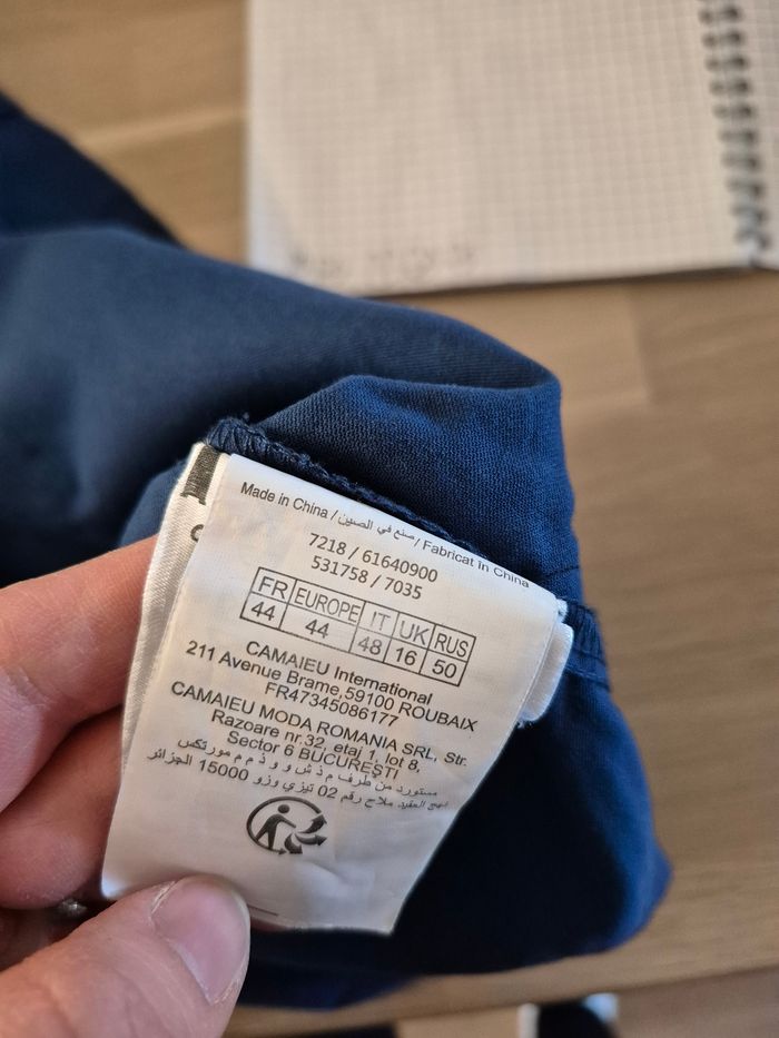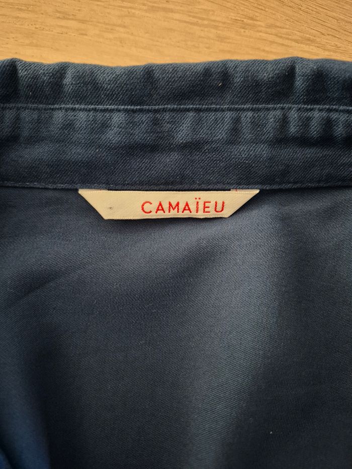 Robe manches courtes Épaisse, avec ceinture et boutons Marque : Camaïeu Couleur : bleu marine Taille : 44 Très peu portée, en excellent état