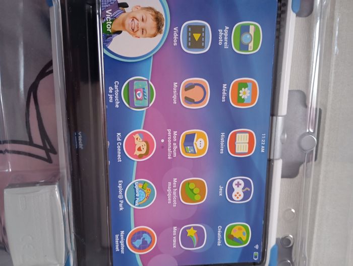 Je vends une tablette pour enfant VTech Storio MAX XL 2.0. Elle est neuve, jamais utilisée. Vendue avec sa boîte d’origine et son chargeur. La tablette a seulement été sortie de la boîte, elle n’a jamais servi. C’est une tablette spécialement faite pour les enfants : jeux éducatifs, livres, dessins, photos, avec un système sécurisé. A partir de 3ans -12 ans